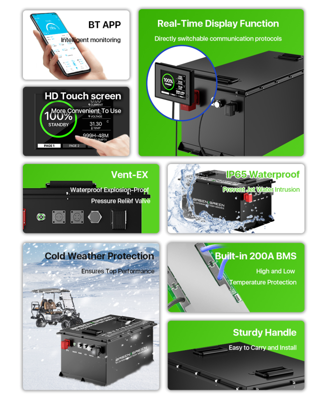 If your course has elevation changes, lithium’s stability under load is one of the first things you notice. With a 200A BMS, the goal is steady output while protecting the cells during demanding draws.